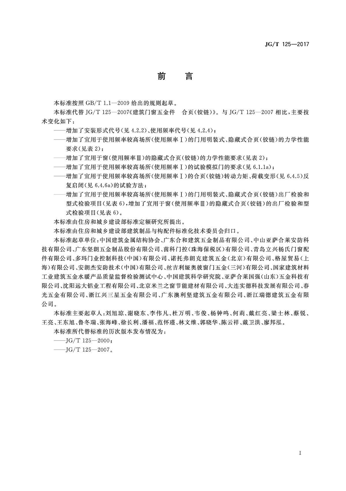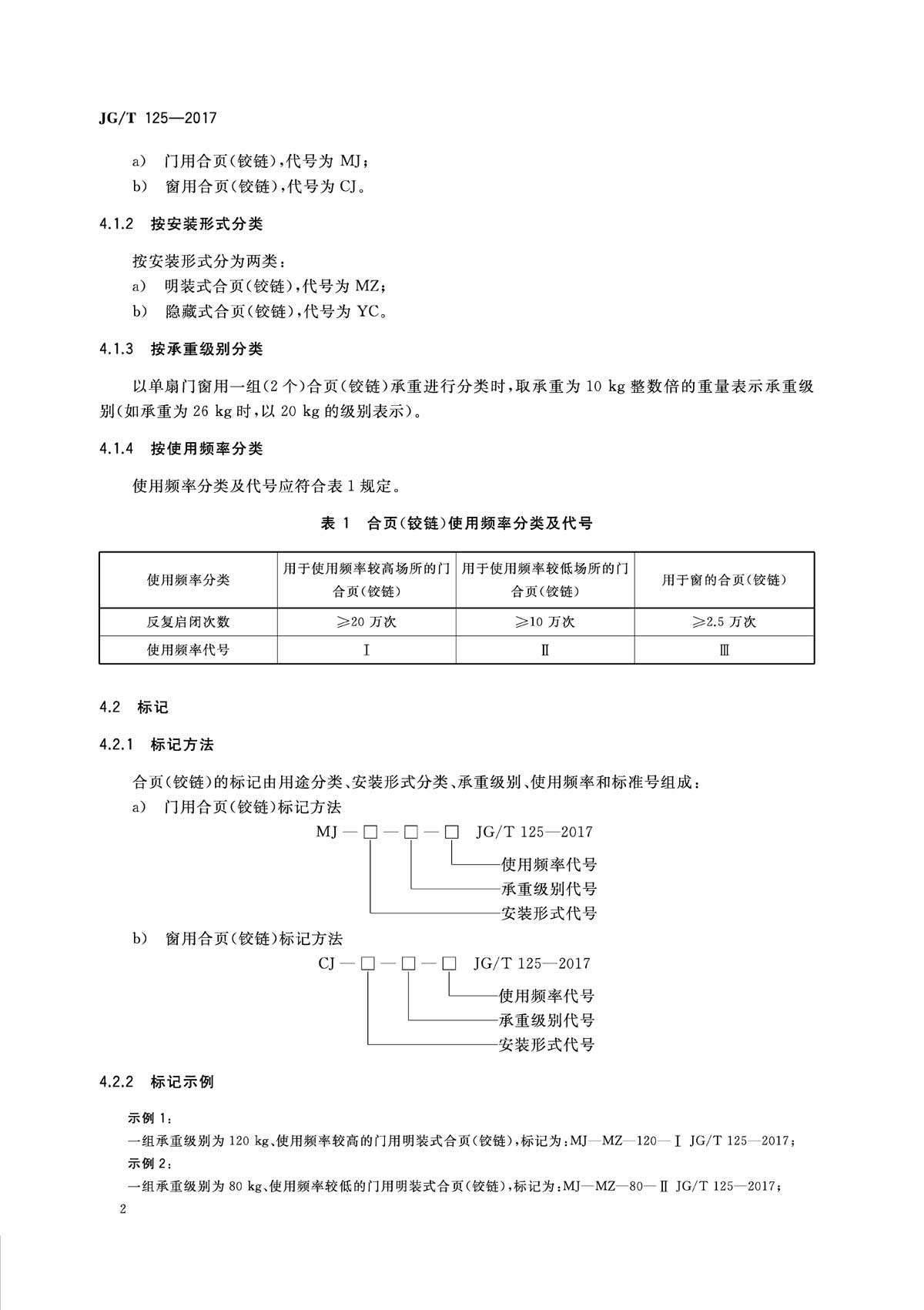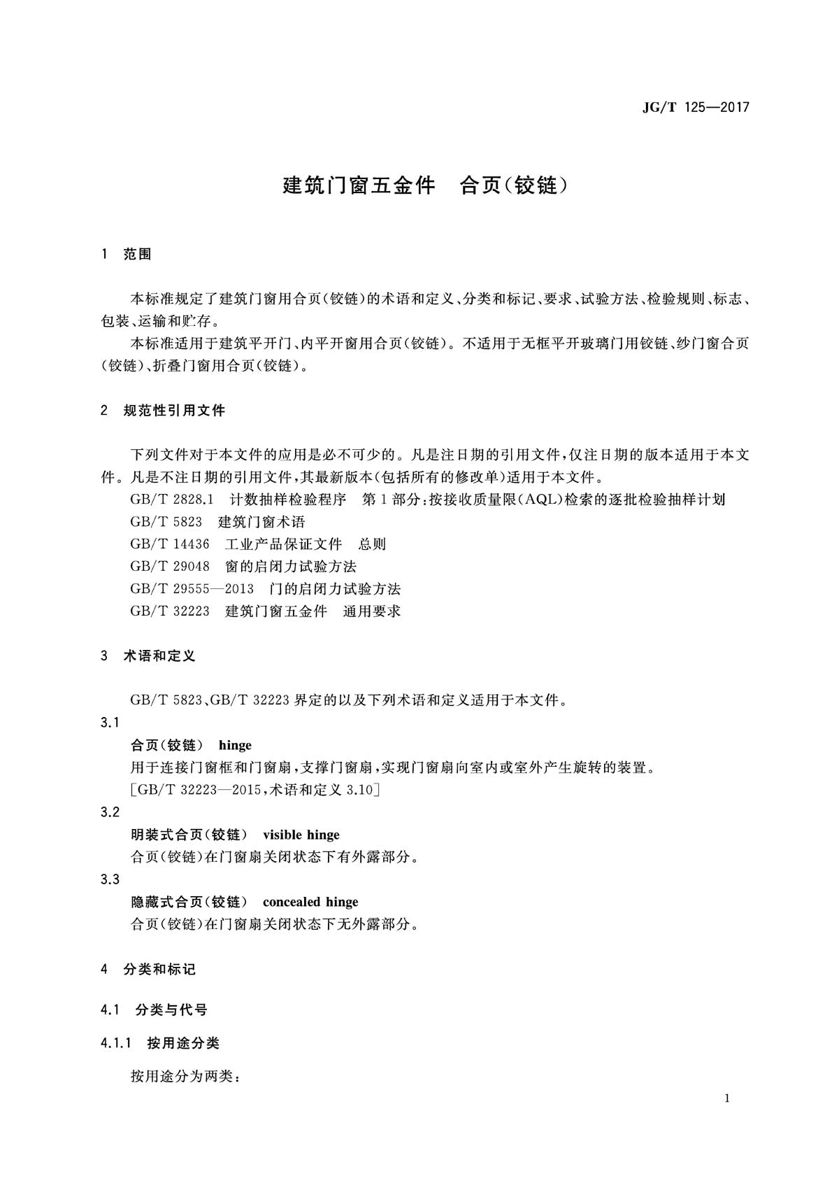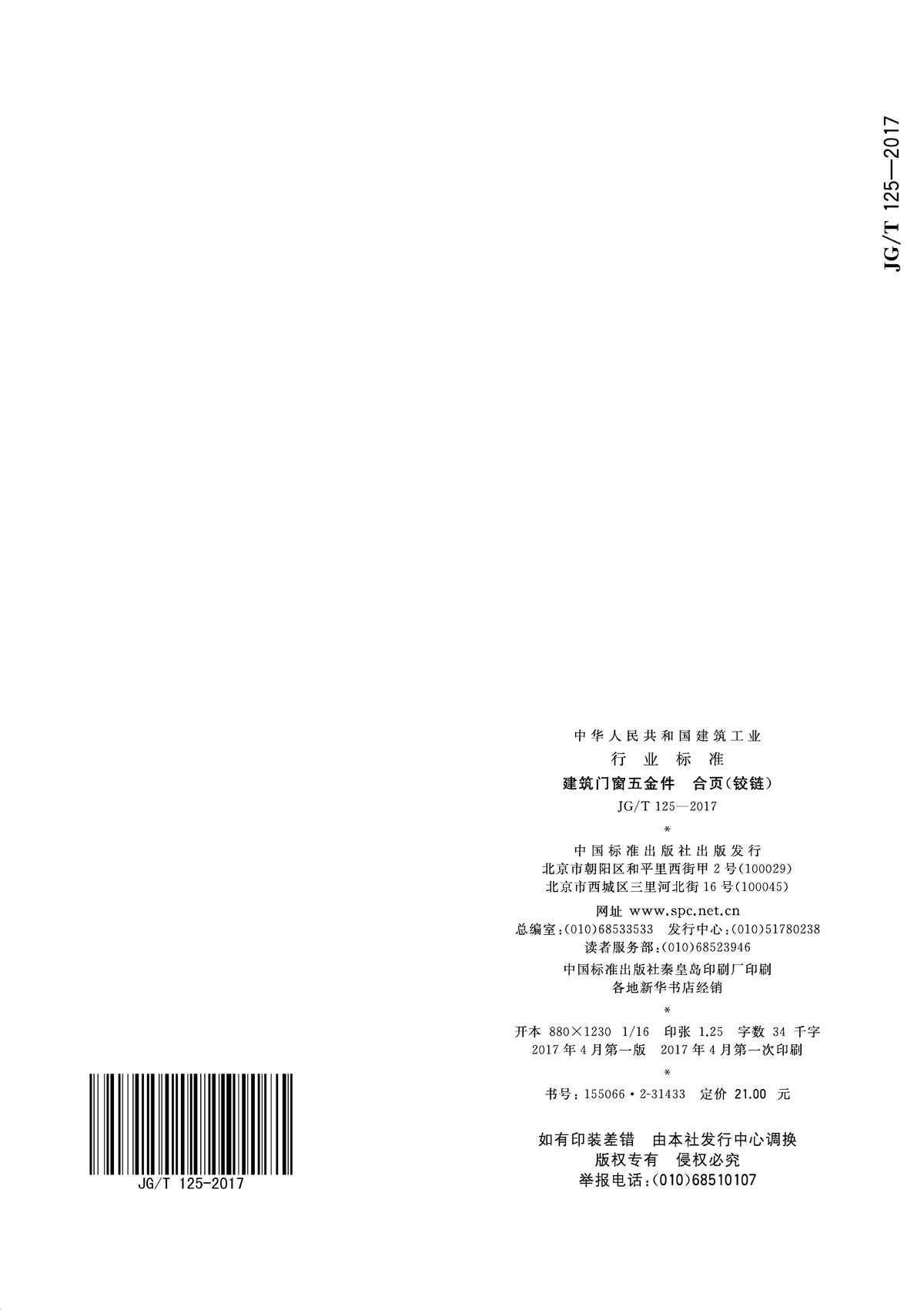 合頁(鉸鏈)行業標準 JG/T125-2017