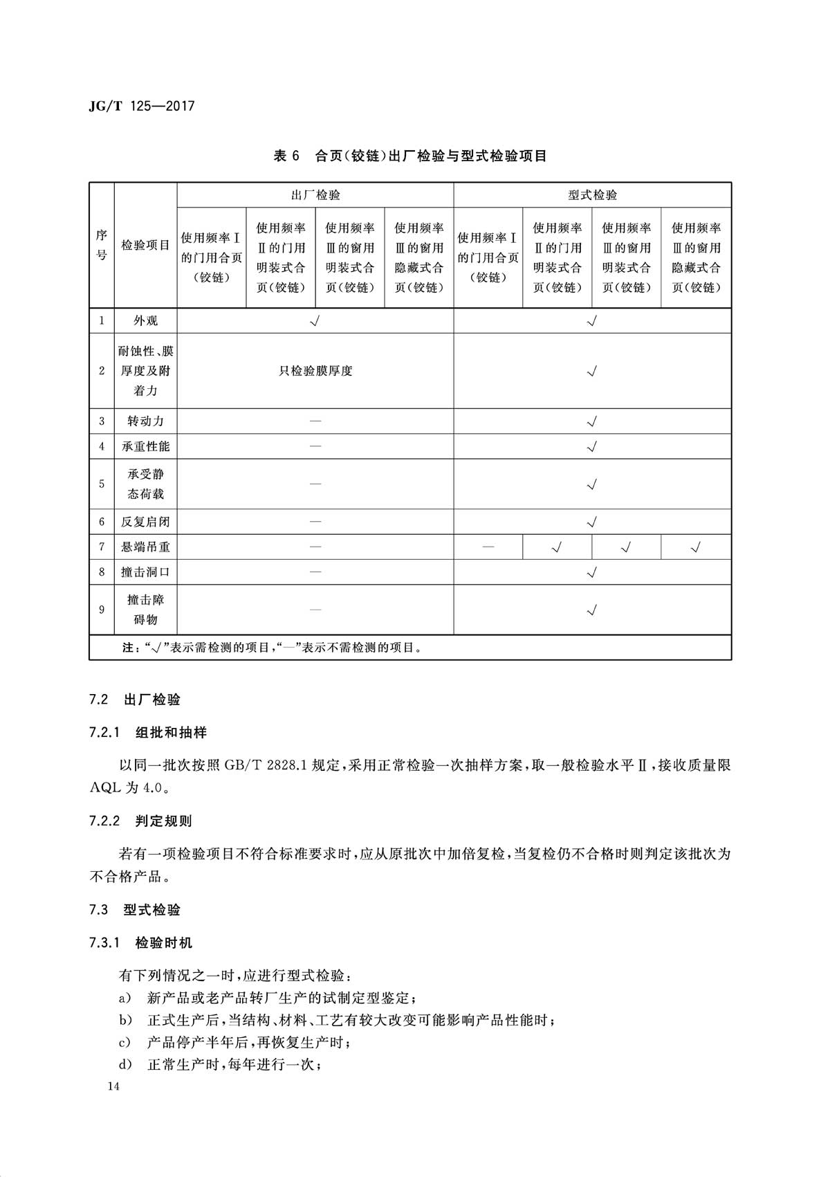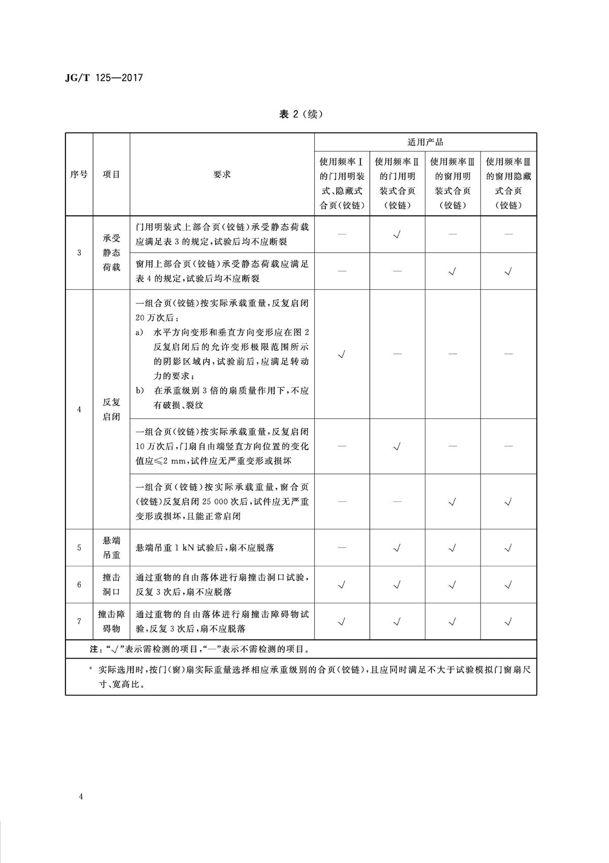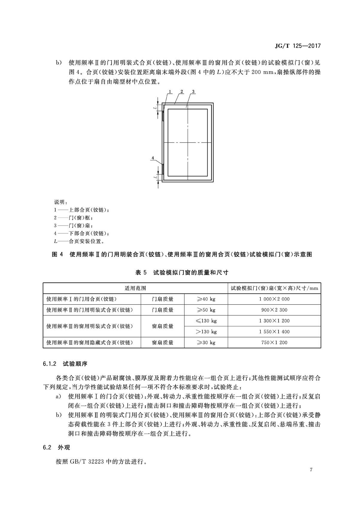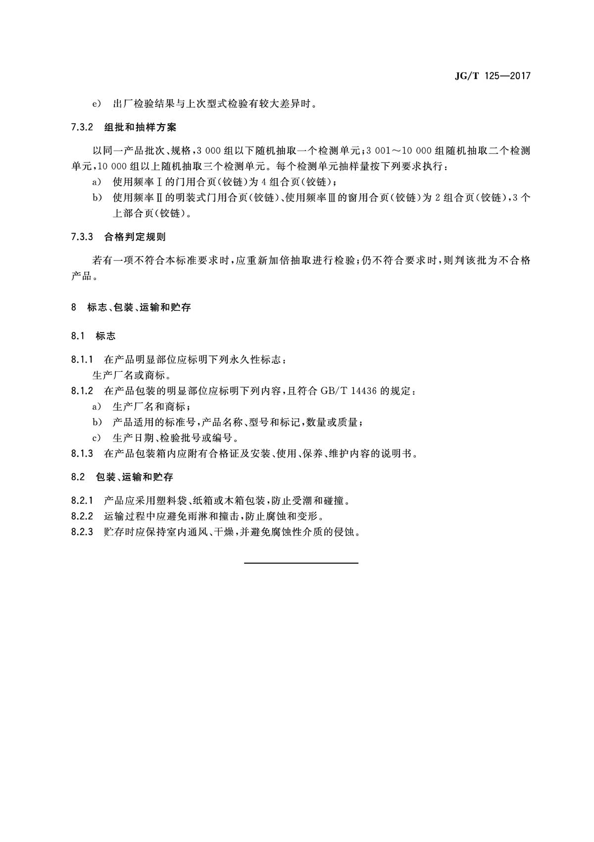 合頁(鉸鏈)行業標準 JG/T125-2017